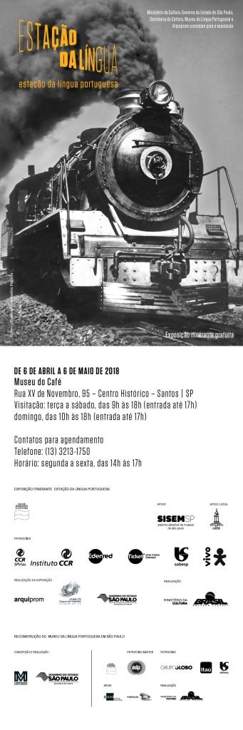 Com a marca de mais de 5 mil visitantes em Tatuí, a exposição itinerante Estação da Língua Portuguesa, que leva na bagagem acervos do museu (atualmente em reconstrução), segue viagem por São Paulo e faz sua segunda parada em Santos, onde ficará em cartaz de 6 de abril a 6 de maio, no Museu do Café (Rua XV de Novembro, 95 – Centro Histórico).
